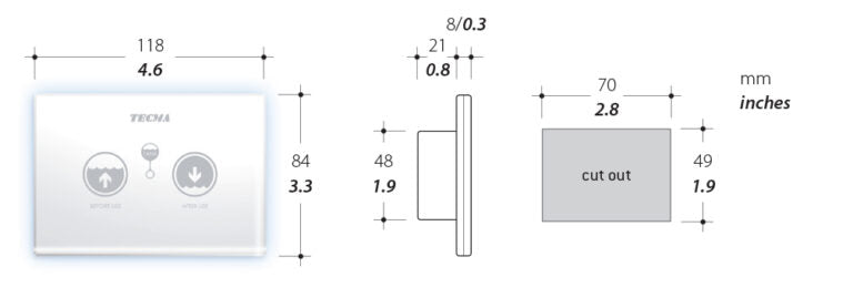 Touch-Bedienfeld aus Hightech-Glas und LED-Hintergrundbeleuchtung mit Näherungssensor. Design und Hightech kombiniert mit Rücksicht auf das Budget.