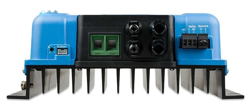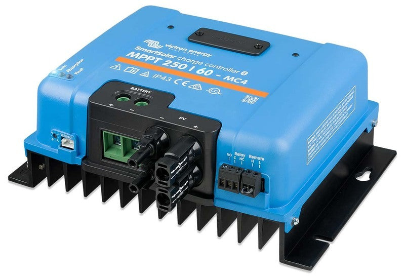You can remotely control and monitor the extensive features of your SmartSolar MMPT charger with integrated Bluetooth by pairing it with your smartphone or other device via VictronConnect. If your system has a GX device connected to the Victron Remote Management Internet portal ( VRM ), you have full access to your MPPT anytime, anywhere. Both VictronConnect and VRM are available free of charge. For remote installations - even if there is no Internet connection nearby - you may be able to control your MPPT by connecting to the GlobalLink 520 monitor.