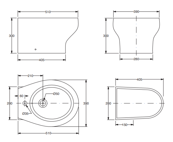 Tecma Silence Plus 2G Short Bidet - ohne Mischarmatur
