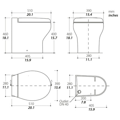 Sockelabmessungen: 405 x 280 mm / 15.9 x 11.1 Zoll