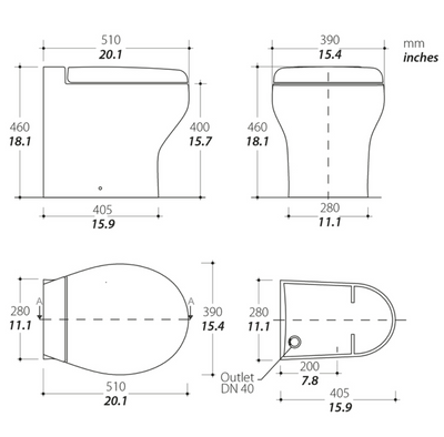 Sockelabmessungen: 405 x 280 mm / 15.9 x 11.1 Zoll